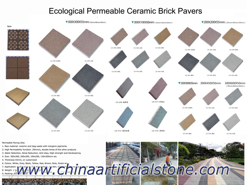 Permeable Ceramic Brick Walkway Pavers are made of the slag waste, waste ceramics after re-processing, high temperature sintering. Permeable Ceramic Brick has high permeability function, more than 20mm/s which is two times of the standards of similar foreign products.