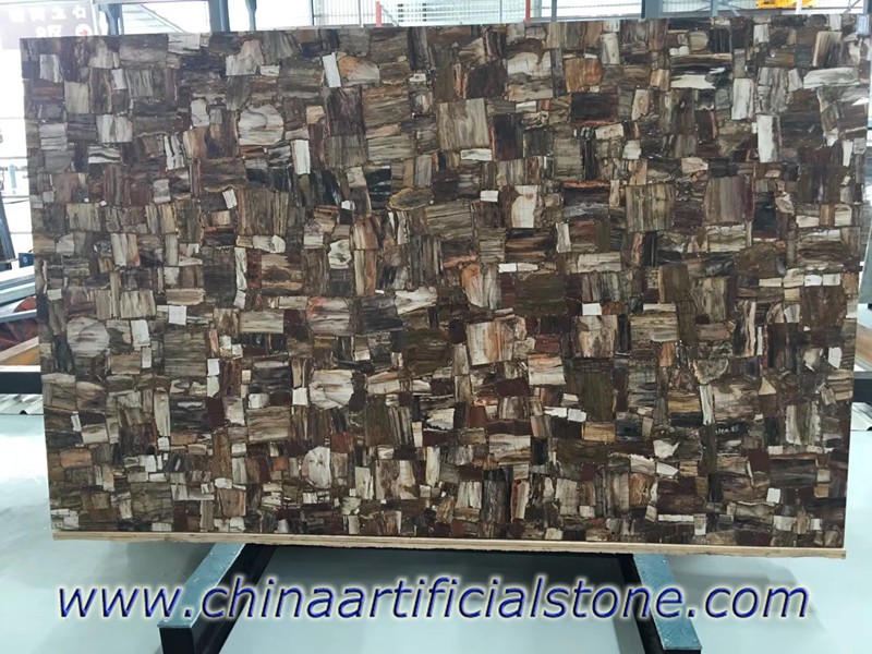 Petrified Wood Gemstone Semi Precious Stone Vein Cut Slabs. Petrified Wood, a gemstone can be cross cut and vein cut to form different slabs style, it is not light translucent semiprecious stone, but a Luxury material for the wall facade, countertops, table tops decoration.