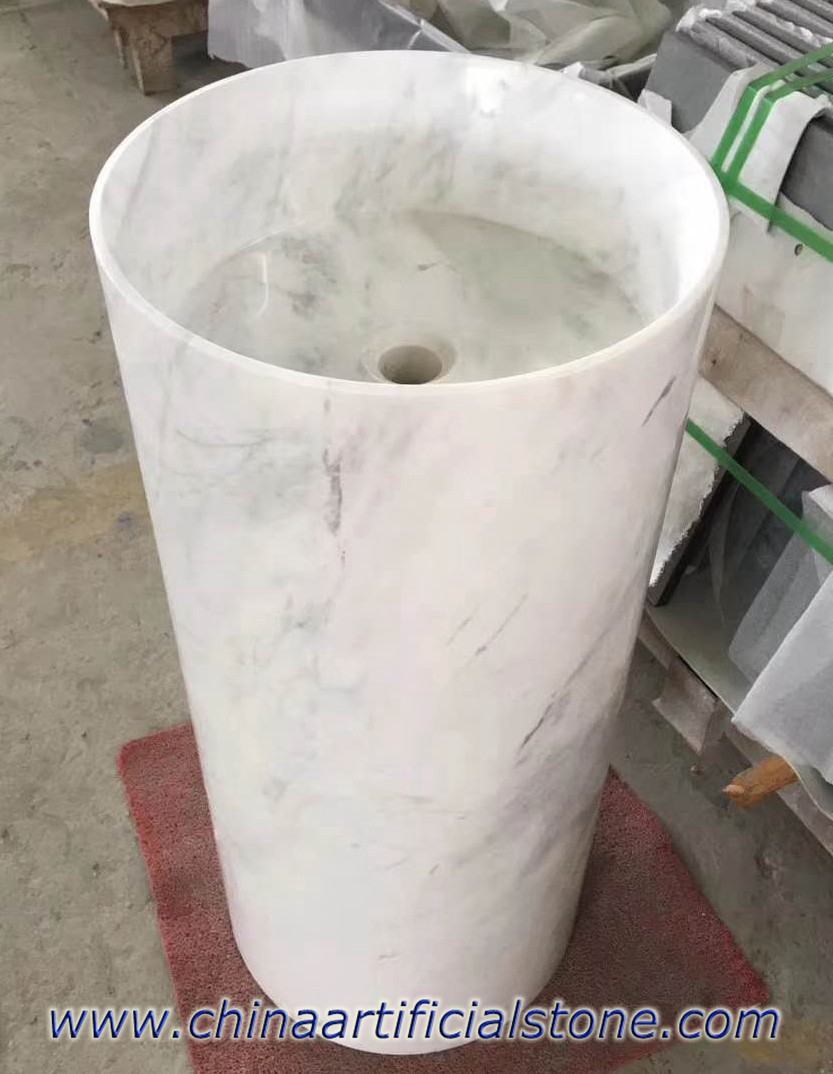 Volakas White Marble Pedestal Sinks 39x39x85cmEnming Stone Supply various kind of stone sinks, terrazzo sinks, modern ceramic sinks. Customized size and colors are welcome. Wholesale prices.